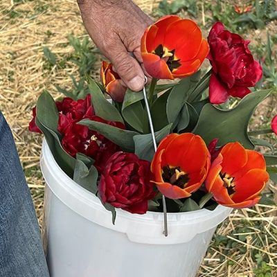 In primavera, i campi si trasformano in una distesa colorata di tulipani: chi ci visita può scegliere e cogliere in autonomia le varietà e le quantità preferite.